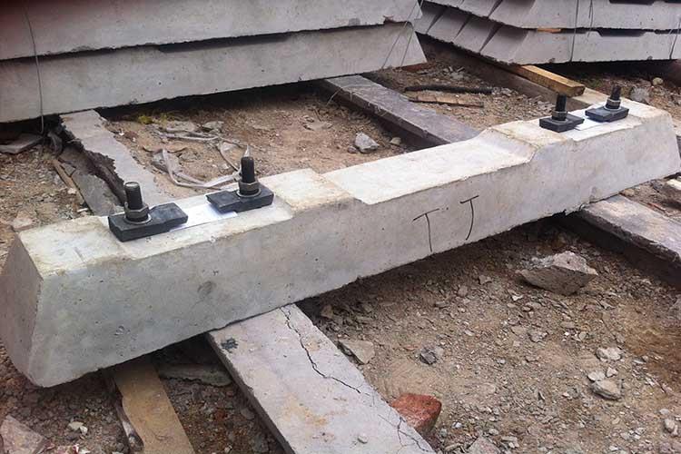 2、混凝土岔枕:混凝土岔枕是目前世界上主要采用的岔枕形式。隨著鐵路高速、重載發(fā)展的需要,用混凝土岔枕代替木岔枕已成為岔枕的發(fā)展方向。混凝土岔枕材源較豐富,并能保證幾何尺寸,使軌道彈性均勻,提高了軌道的穩(wěn)定性。且不受氣候、腐朽、蟲蛀及火災(zāi)的影響,使用壽命長。此外,混凝土岔枕還具有較高的道床阻力,可提高線路的橫向穩(wěn)定性。